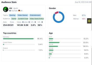 Ulti is a gaming-focused YouTube creator producing content centered around Gaming, Video Games, and Entertainment. His audience includes gamers, content creators, and video game enthusiasts who enjoy his engaging and relatable approach to gameplay and commentary. Through consistent content and a passion for gaming culture, he continues to build a loyal community that values entertainment, creativity, and connection.